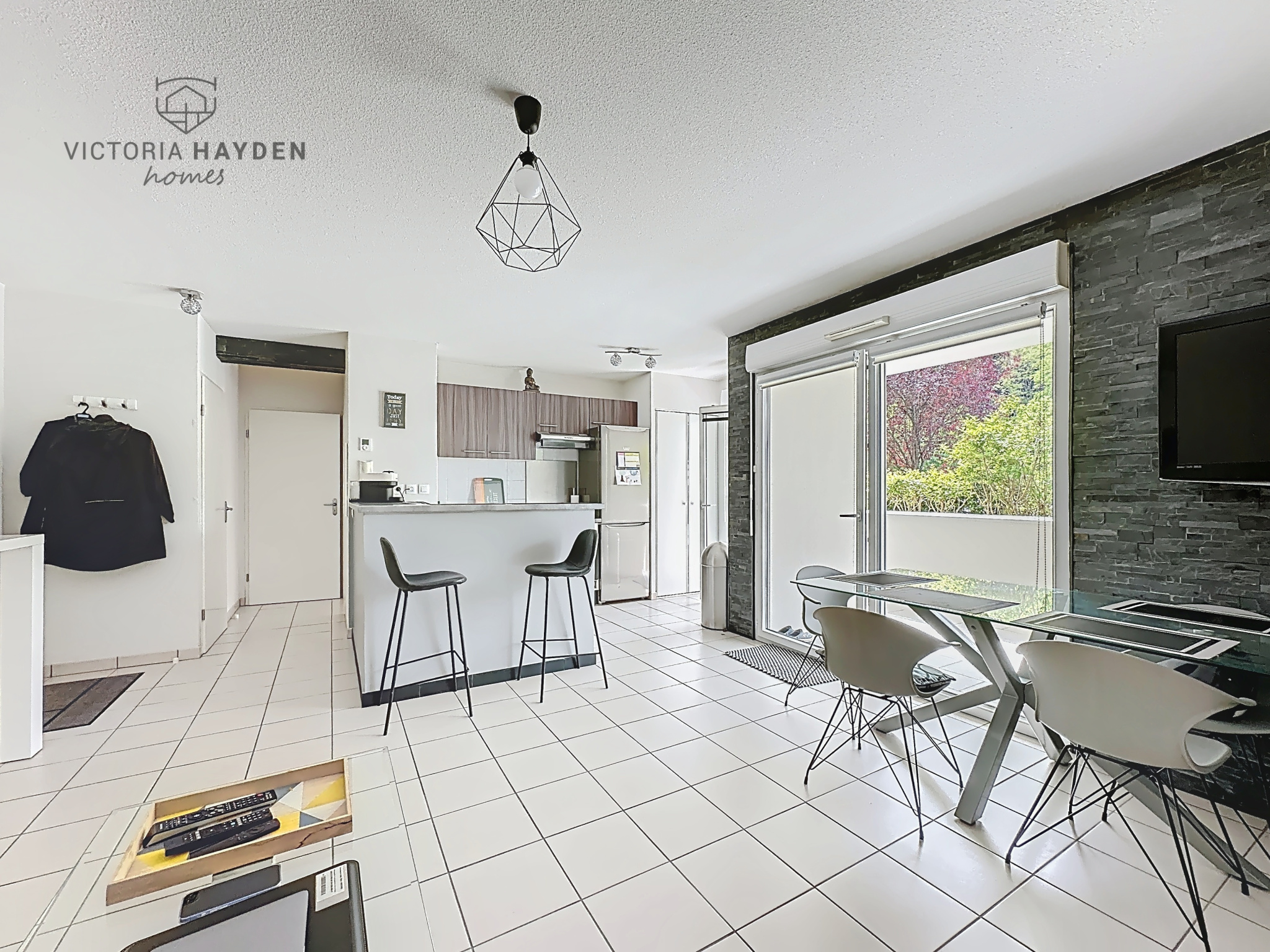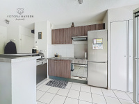 Dans un environnement calme et verdoyant, près des commodités du centre du village, appartement T2 avec terrasse ensoleillée de 13m2. Pièce principale avec cuisine ouverte et baie vitrée donnant sur la terrasse. Chambre avec placard et accès terrasse également. Salle de bains carrelée, WC indépendant. 2 places de parking. Idéal pour résidence principale ou investissement locatif (longue durée ou AirBnB). Copropriété de 50 lots principaux. Pas de procédure en cours. Honoraires charge vendeur. Etat des risques disponible. Conso. énergie estimée entre