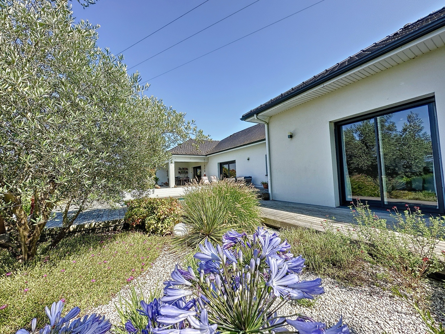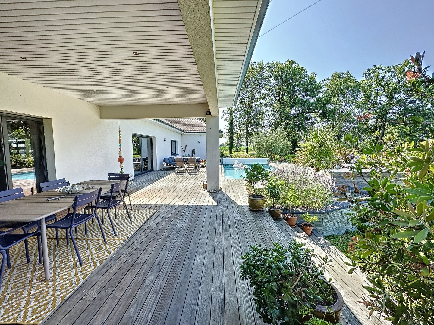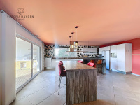 À 10 minutes de Pau et 5 minutes du Centre Total, très belle maison contemporaine de plain-pied avec piscine et vue Pyrénées. Elle offre des volumes remarquables, avec une pièce à vivre de 100 m² composée d’un salon avec cheminée, d’une salle à manger et de baies vitrées à galandage. La cuisine ouverte dispose d’un îlot central, d’un coin repas et de nombreux rangements. La partie "jour" comprend également deux bureaux, des WC suspendus et une cave à vins climatisée. Côté nuit, une suite parentale de 40 m² avec salle de bains complète (baignoire et douche à l’italienne), dressing et accès terrasse. Trois autres chambres, chacune avec salle d’eau privative et placard ou dressing. En annexes; un spacieux garage. À l’extérieur : une terrasse en bois exotique, une piscine chauffée, une cuisine d’été et un espace repas, avec les Pyrénées en toile de fond. Le tout sur un terrain de 1753 m².